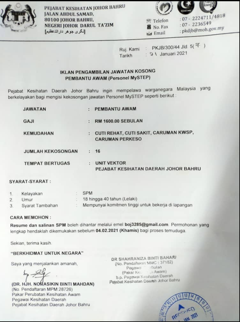Iklan Jawatan Kosong Pejabat Kesihatan Daerah Johor Bharu Jobs Hub