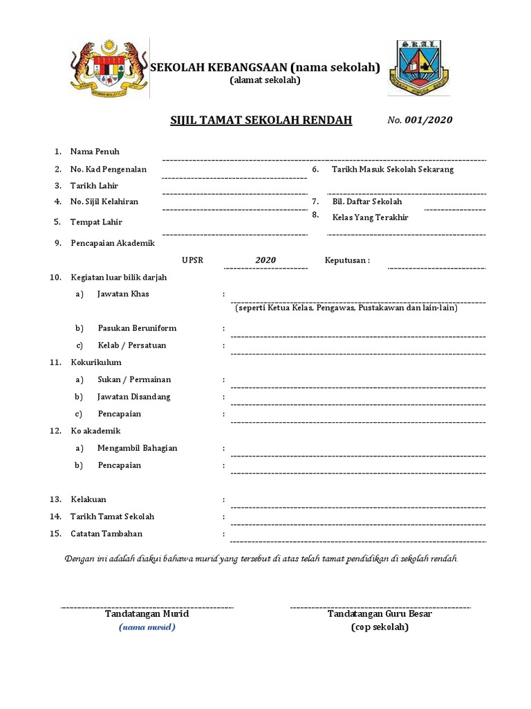 Sijil Tamat Sekolah Rendah 2020 Pdf